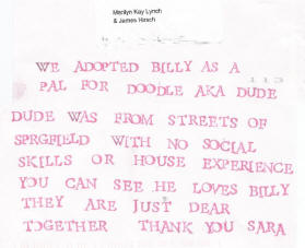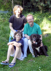 Ben was adopted in July 2006 to a very nice family: Lallie, Steve, daughter Gracie (absent from photo - at gymnastics class) and son John. They have signed up for a dog training class with Jennifer DuMond Biglan. Ben was cruelly left in a back yard in Junction City when his people moved, and he's really enjoying his wonderful new home! Thanks, everyone, for working so hard on behalf of abandoned animals like Ben : )
