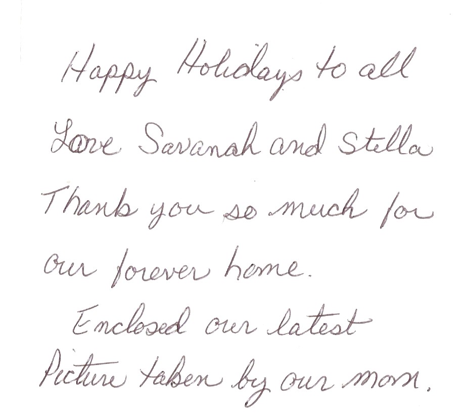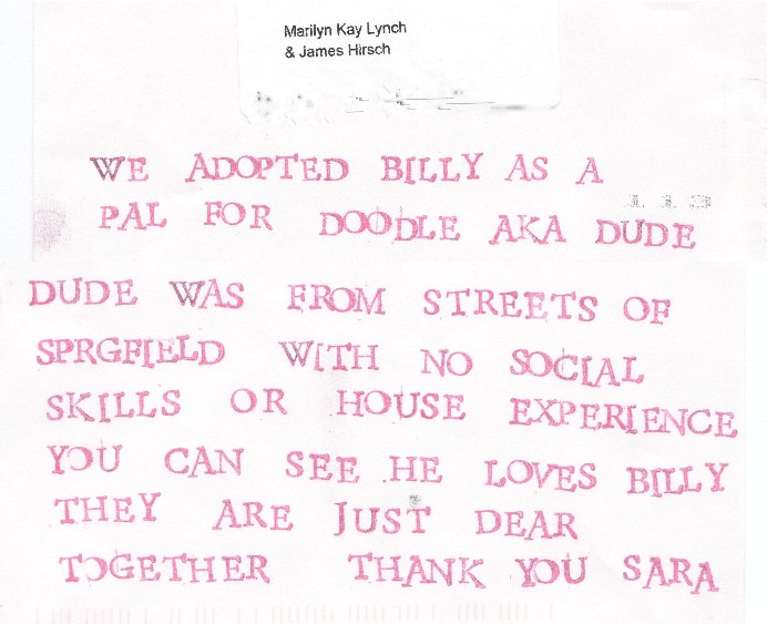 An Email from Willy & Seymour's adopter: I just wanted to share some photos of